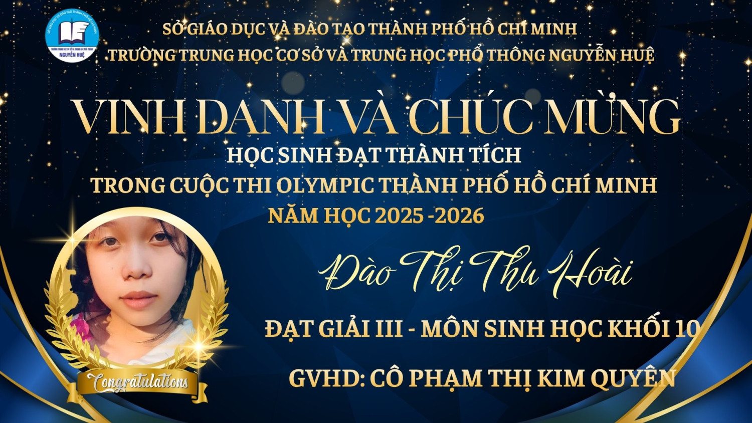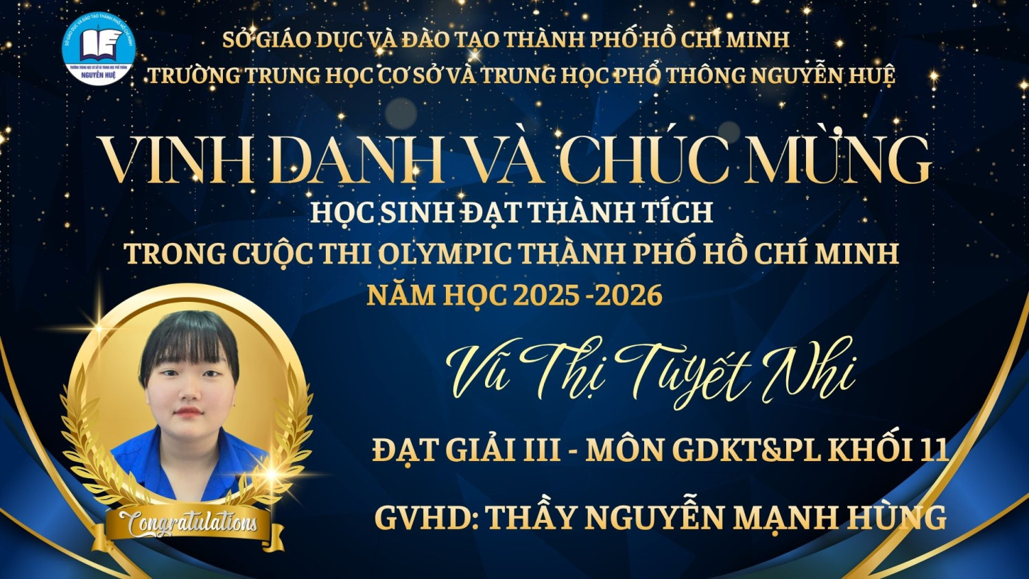 KẾT QUẢ CUỘC THI OLYMPIC THÀNH PHỐ HỒ CHÍ MINH DÀNH CHO HỌC SINH TRUNG HỌC PHỔ THÔNG NĂM HỌC 2025 - 2026